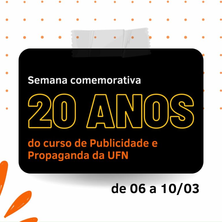 O Curso de Publicidade e Propaganda da Universidade Franciscana está prestes a completar 20 anos e a data precisa ser celebrada! Sendo assim o curso está promovendo uma semana comemorativa, de 06 a 10 de março de 2023, para receber alguns egressos e destacar temáticas importantes para a área de