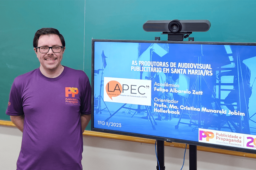 Na manhã do dia 18/09 ocorreu a 28° edição da Jornada Acadêmica do curso de Publicidade e Propaganda. O evento é organizado pelo Laboratória de Pesquisa em Comunicação (LAPEC) e nele os alunos em processo de produção de TFG 2 apresentam suas pesquisas em andamento, com o propósito de atualizar seus colegas sobre os estudos desenvolvidos na etapa final do curso.