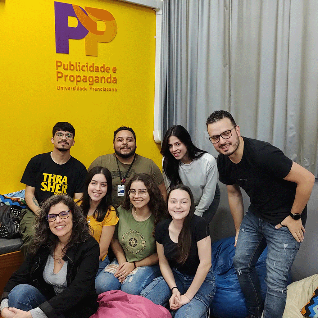 E na segunda-feira, dia 21 de agosto de 2023, os alunos, voluntários e monitores: Gabriela Soares, Luiza Pereira, Carolina Araújo, Ana Borba, Giovanna Bertollo, Vitória Maicá, Vitor Marques, José Romenito de Souza e Daniel Guterres foram recepcionados na GEMA – Agência Experimental de Publicidade e Propaganda, pelos professores Bruno César Ribeiro, Claudia Buzatti Souto e Pauline Neutzling Fraga, para o início das atividades do semestre.