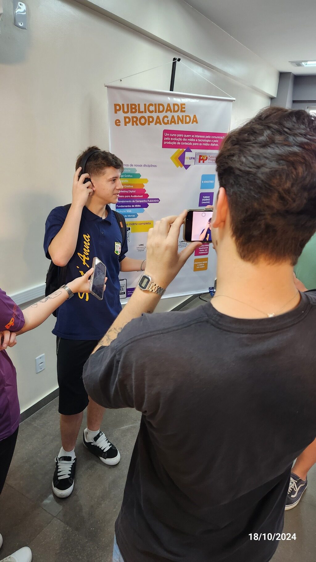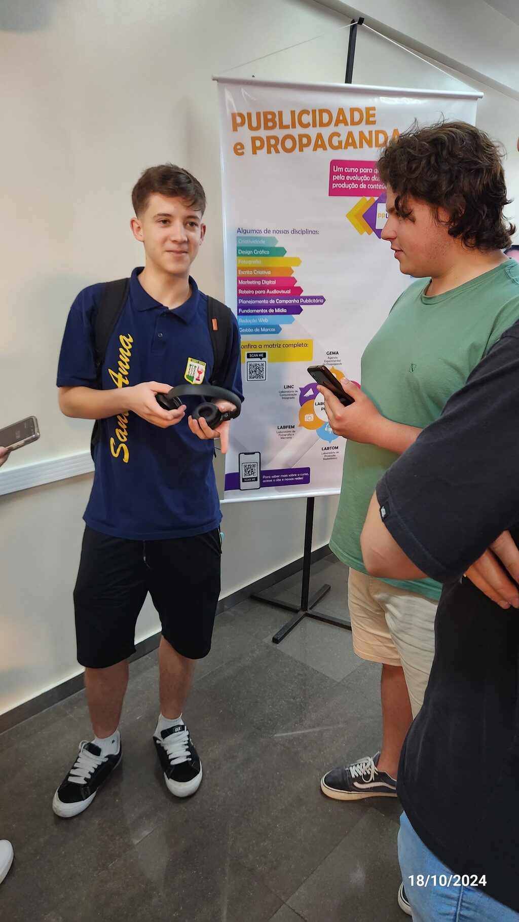 O Curso de Publicidade e Propaganda participou com um estande especial no prédio 16. No local, os estudantes puderam conversar com professores e alunos, que apresentaram a estrutura do curso e explicaram a rotina acadêmica e as oportunidades da área. Para aqueles que demonstravam interesse, a experiência ia além: eles eram convidados a uma visita guiada aos laboratórios no prédio 14. Durante o passeio, os futuros acadêmicos puderam conhecer mais sobre as ferramentas e o ambiente onde são realizadas as atividades práticas do curso, vivenciando de perto o que envolve o cotidiano de um profissional da publicidade.