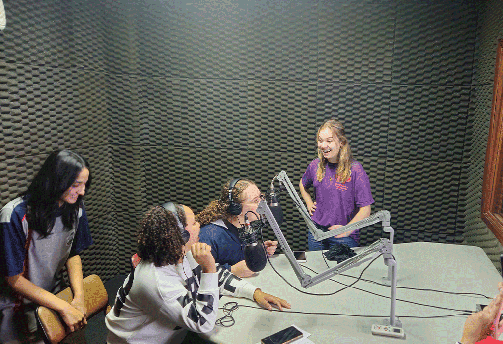 Encerrada a dinâmica de planejamento, os estudantes realizaram uma visita pelos principais espaços práticos do curso. Eles puderam conhecer os laboratórios onde são realizadas atividades como produção audiovisual, design e planejamento —, além de visitarem a UFN TV, o canal universitário voltado à produção e difusão de conteúdos institucionais e jornalísticos.