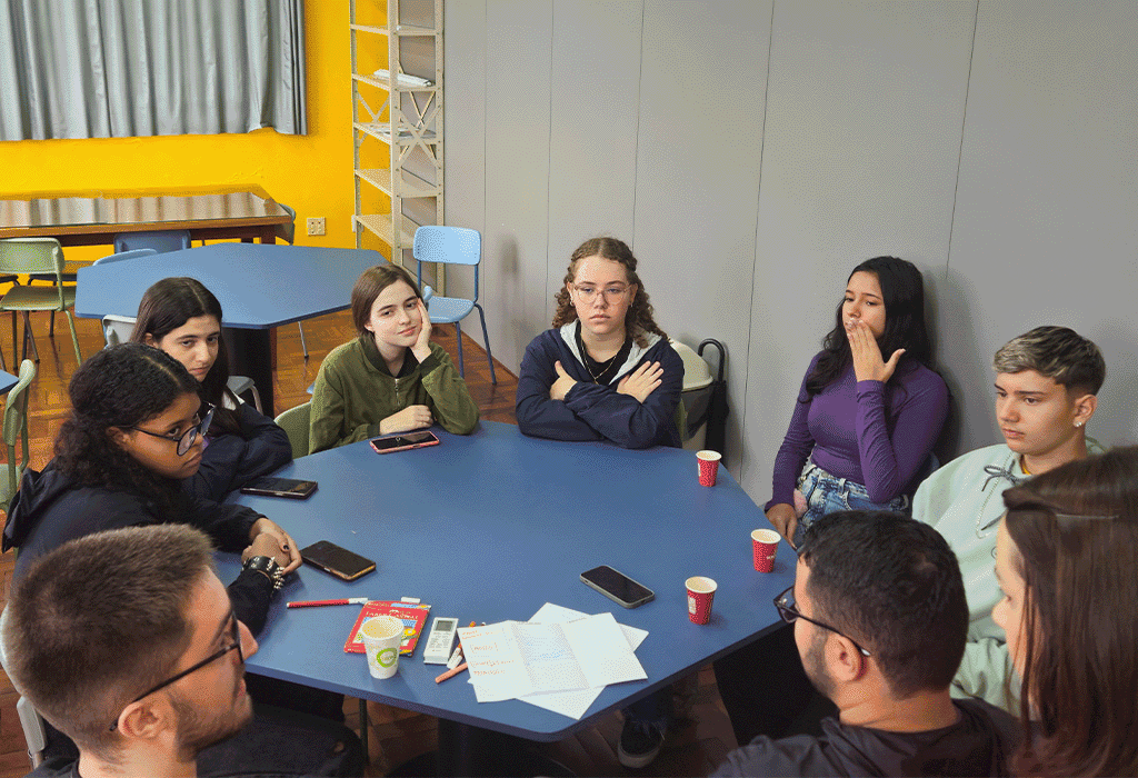 Após a exposição inicial da professora Pauline, os alunos foram divididos em três grupos mistos — compostos por estudantes do ensino médio e da graduação em Publicidade e Propaganda — para pensar estrategicamente as ações e materiais que irão desenvolver em suas campanhas. Essa troca permitiu que os alunos do colégio recebessem orientações práticas, criativas e técnicas diretamente dos universitários, favorecendo um ambiente colaborativo. A atividade também contou com a presença e acompanhamento das professoras Vivian dos Reis e Raquel Barbosa, da Escola Cícero Barreto, que contribuíram com reflexões ao longo da experiência.